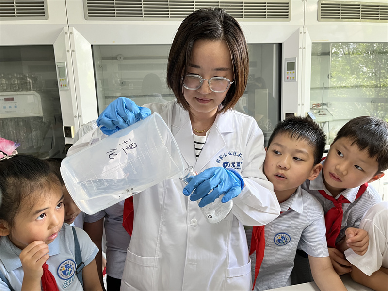 随后,大家一同来到乐鱼科技的实验中心,在这里化身小小科学家,学习化学知识,亲手操作实验,感受科学的魅力。实验过程中,小朋友们现场开启“十万个为什么”模式,与乐鱼科技科研人员频繁互动,积极提问。每一次成功的实验都伴随着孩子们的掌声与欢呼,他们在欢笑中领略了科学的乐趣,也在掌声中思考着科学的力量。
