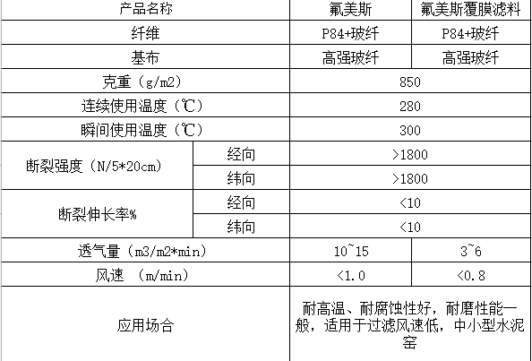 氟美斯除尘布袋克重:>800g/㎡
